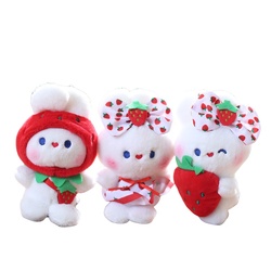 Animal de dibujos animados conejito peluche llavero colgante Bowknot fresa conejo regalos juguetes mochila muñeca felpa llaveros adornos colgantes