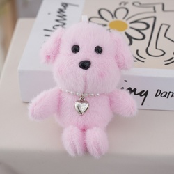 LLavero de perro suave y esponjoso coreano con colgantes de corazón de perlas, animales de peluche, juguetes de peluche, llavero de cachorro, regalo para mujer y niña, llaveros bonitos