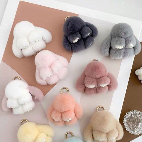 8cm Kawaii Rosa conejito piel Rex conejo pompón muñeca colgante Animal relleno peluche conejo llaveros Juguetes Coche bolsa monedero encanto llavero