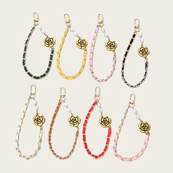 Pu עור camelia פרח פנינה חרוזים אנטי אבודה רצועה אוניברסלי שרשרת תליון מפתחות קסם lanyard עבור בחורה בחורה
